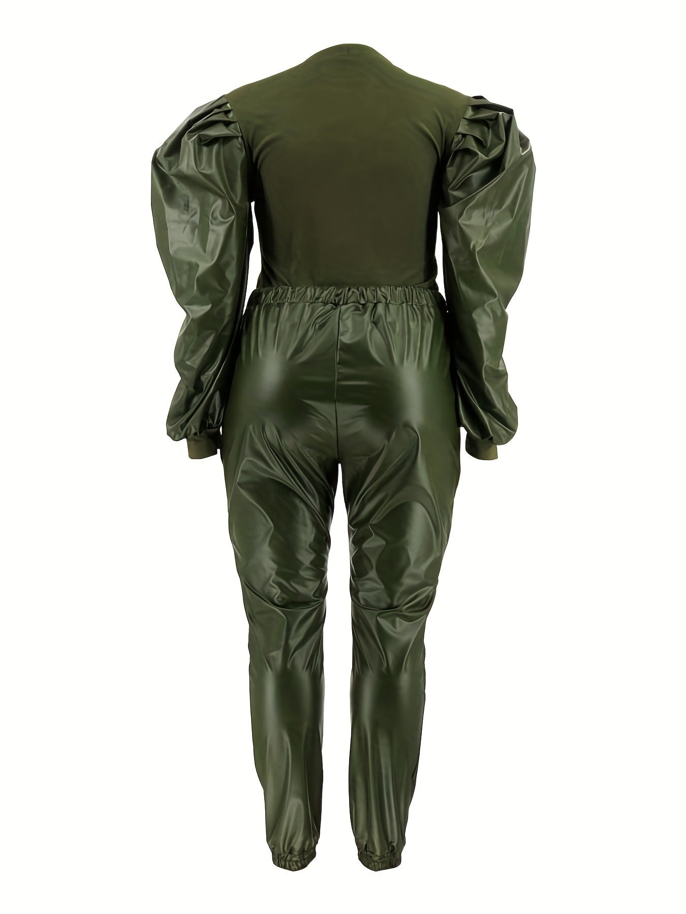 Lounge in luxury or step out in effortless style with our Plus Size Contrast Layer Solid Puff Sleeve Top & Sweatpant Set. This cozy and chic set features a trendy puff sleeve top and comfortable sweatpants, making it a versatile choice for your wardrobe.