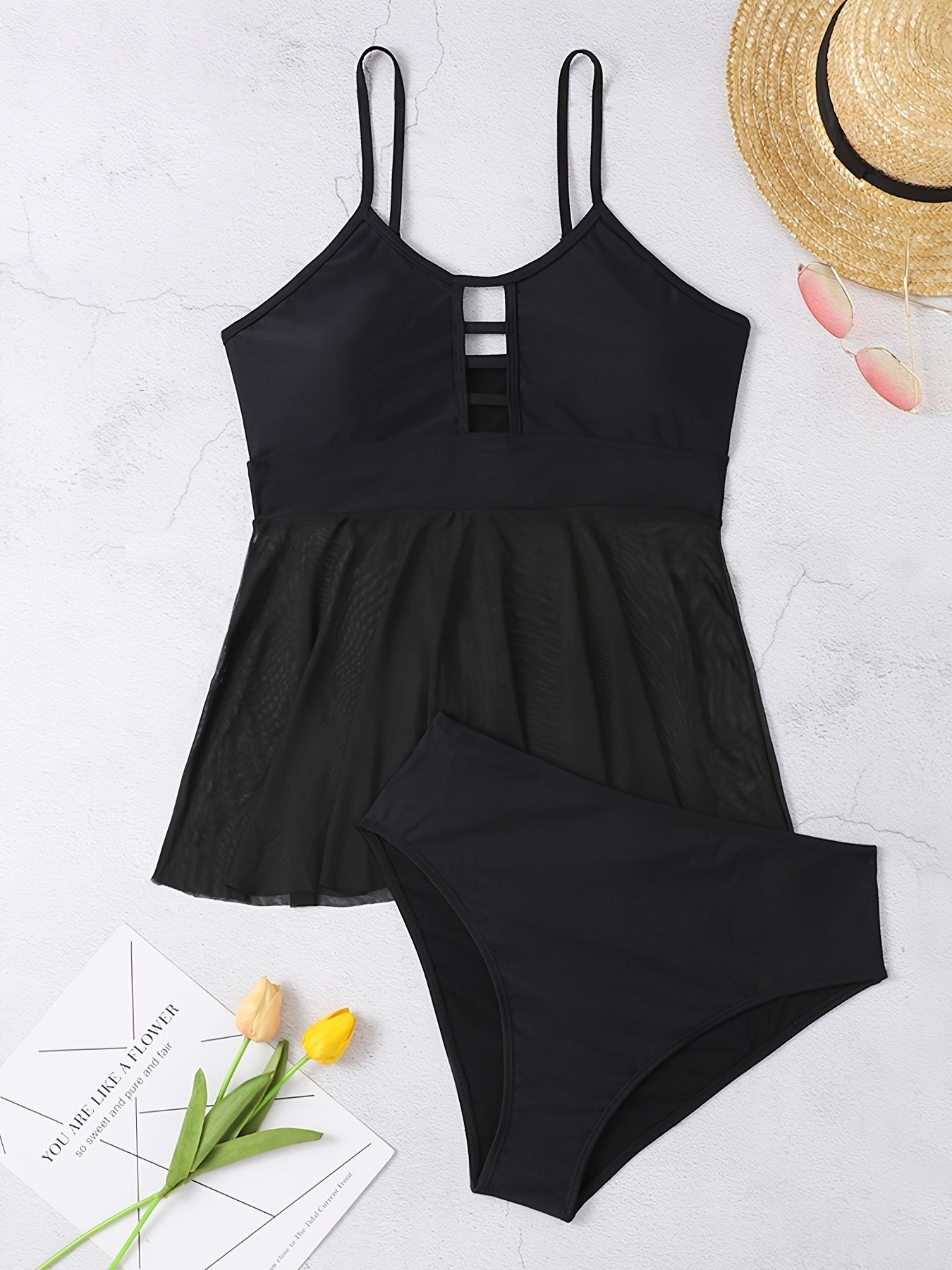 Plus Size Cut Out Top & Panty Retro Swimsuit Set