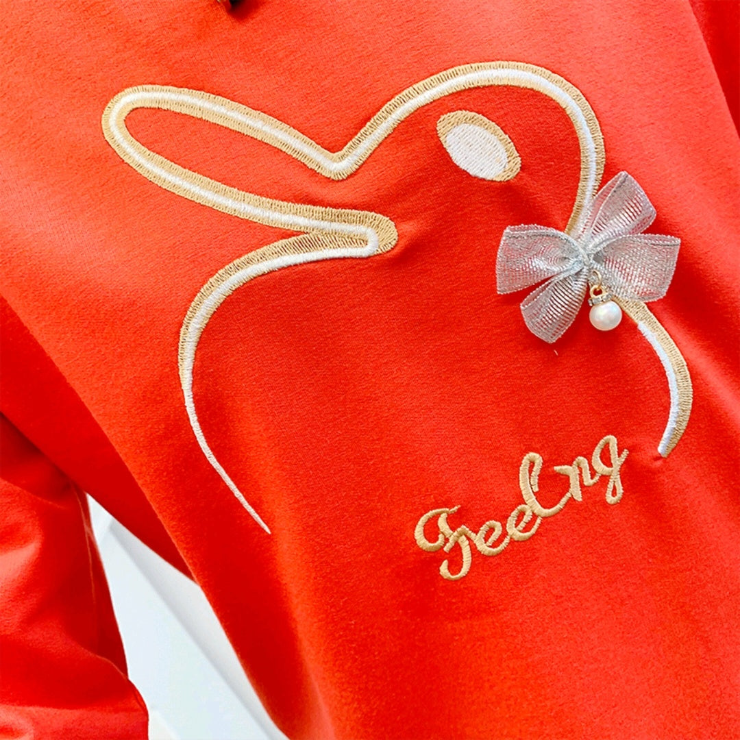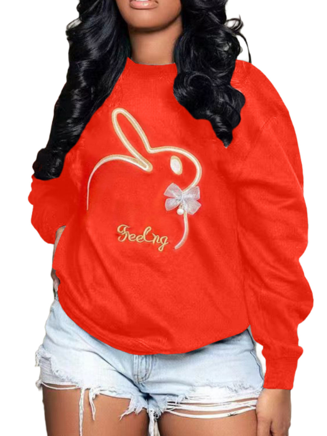 Plus Size Embroidery O Neck Long Sleeve Sweatshirts Top