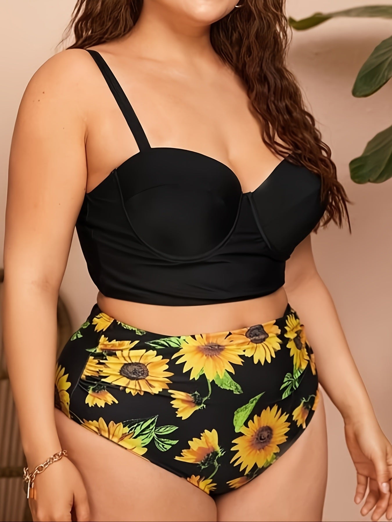 Bloom with Confidence: Plus Size Sunflower Print Swimsuit Set