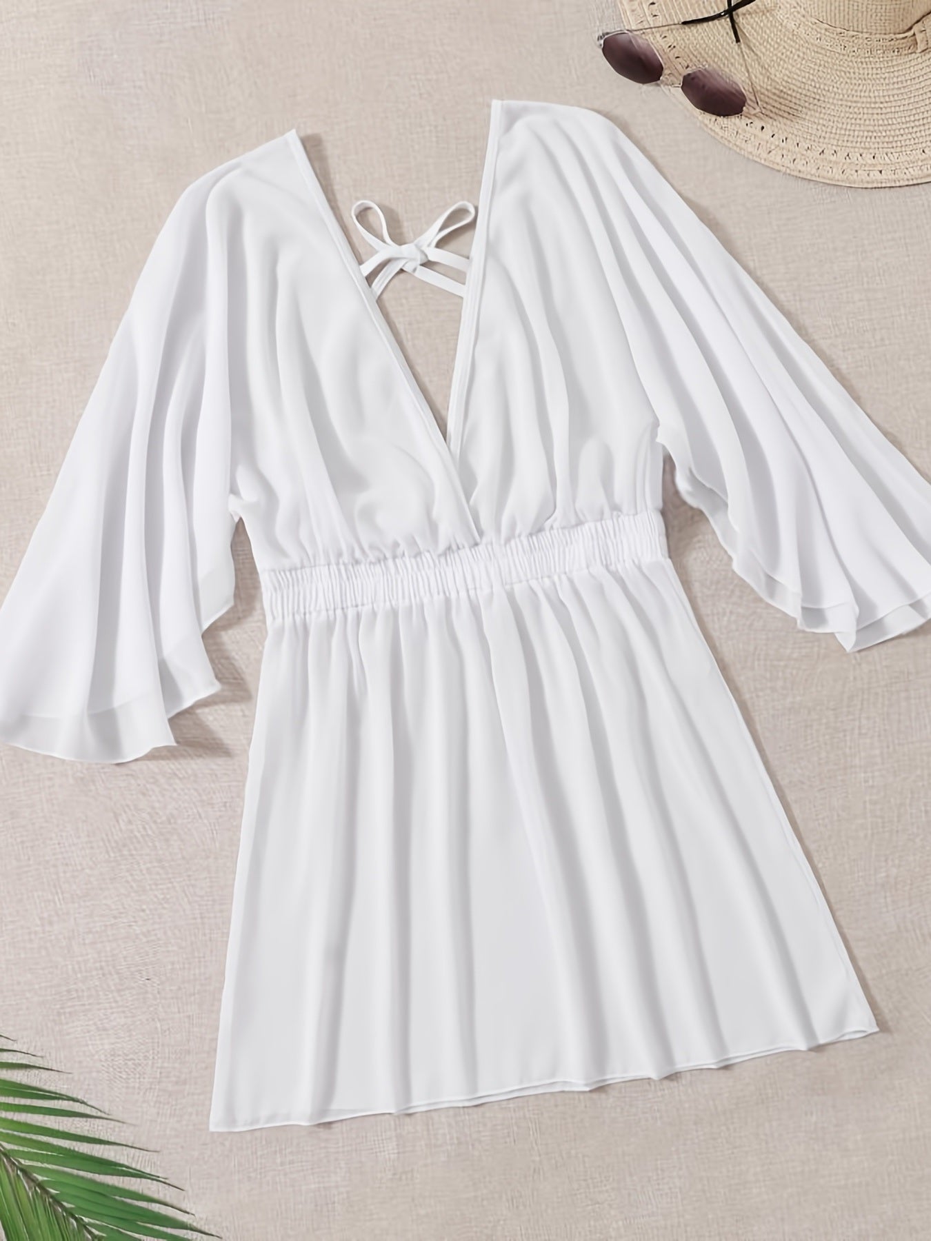 Plus Size Solid Elegant Chiffon Flounce Cover Ups
