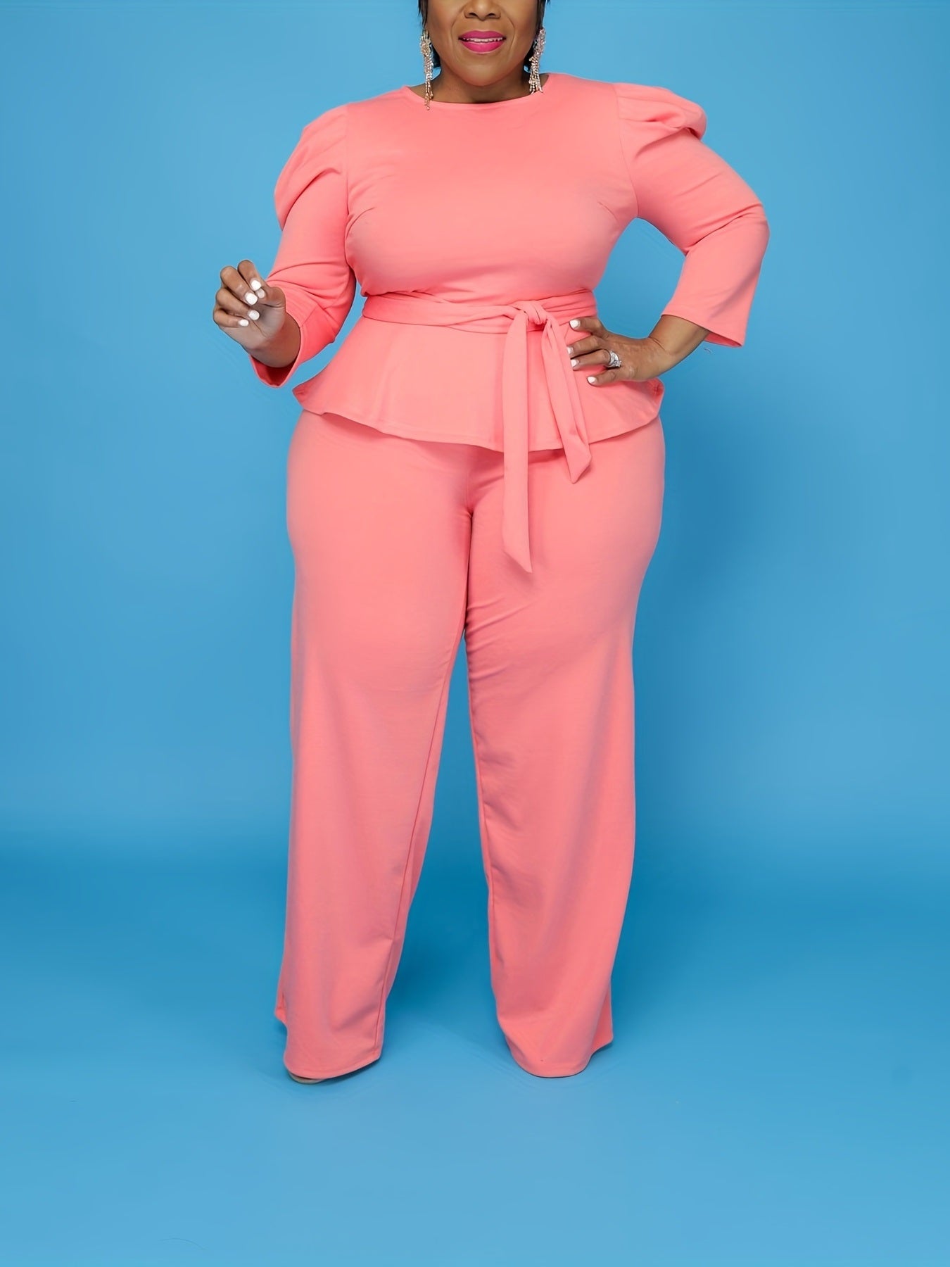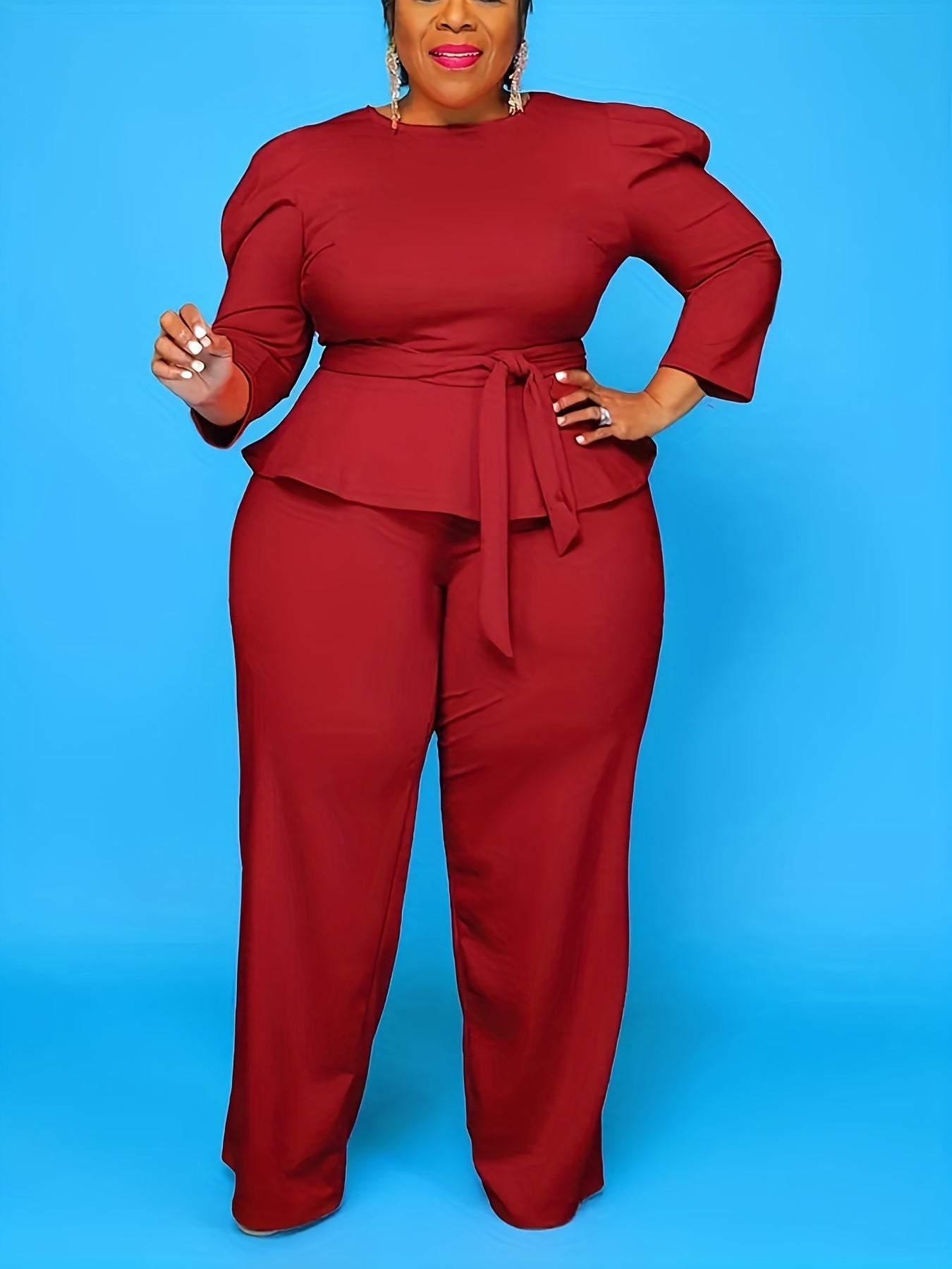 Flatter Your Curves in Style: The 3/4 Sleeve Peplum Top and Wide Leg Pant Outfit