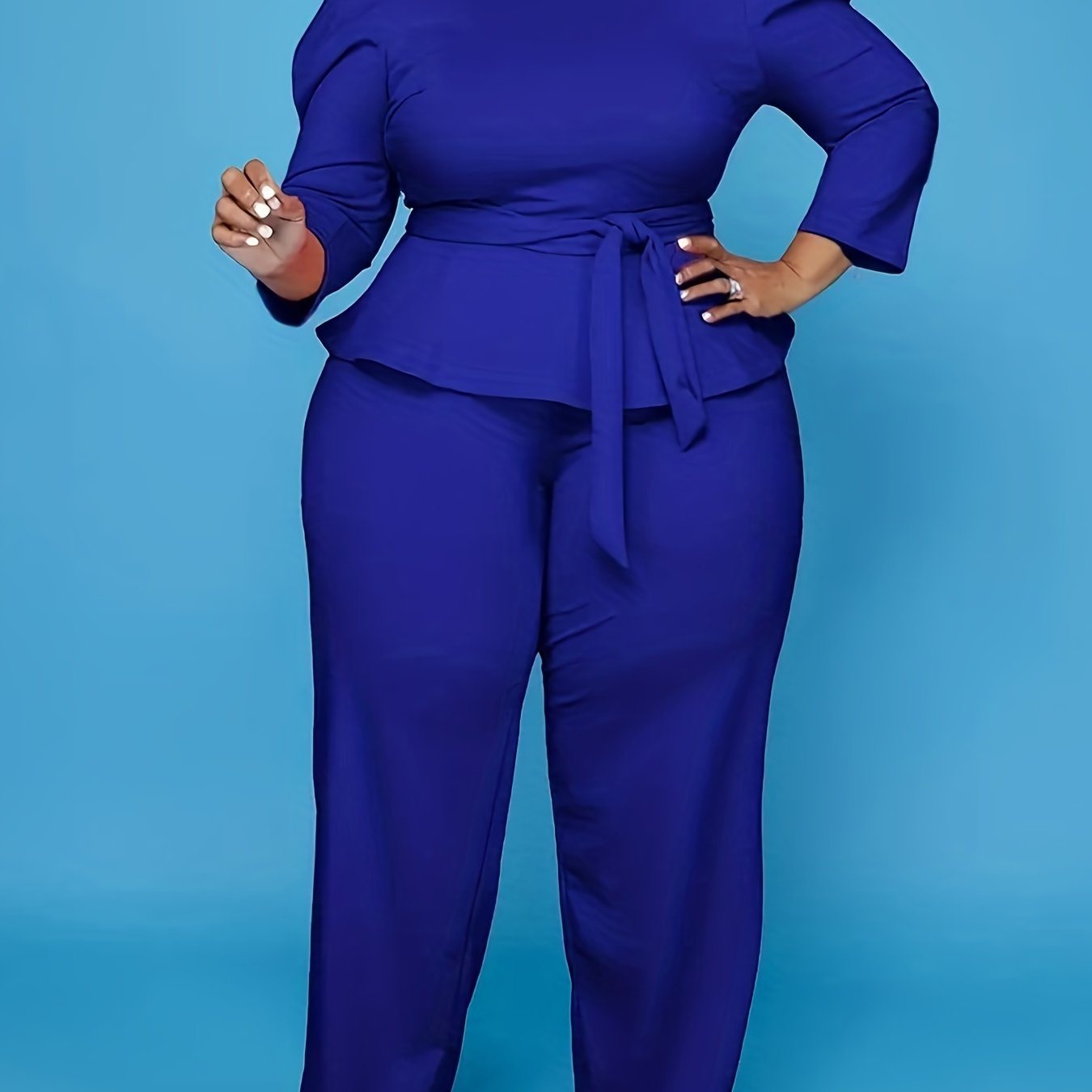 Embrace effortless elegance with our Women's Plus 3/4 Sleeve Peplum Top and Wide Leg Pant Outfits. This stunning two-piece set combines a universally flattering silhouette with on-trend details, making it a versatile addition to your wardrobe.