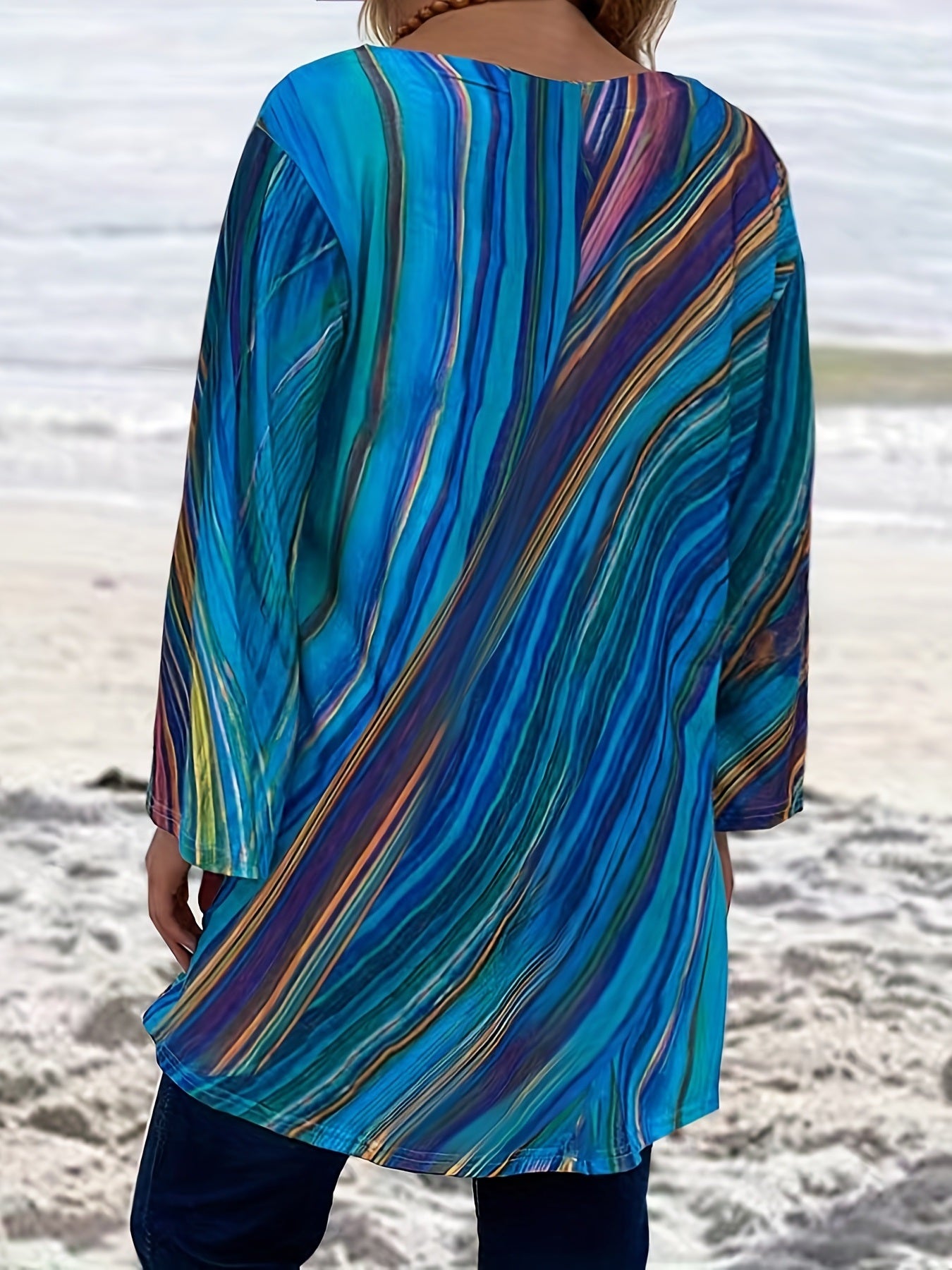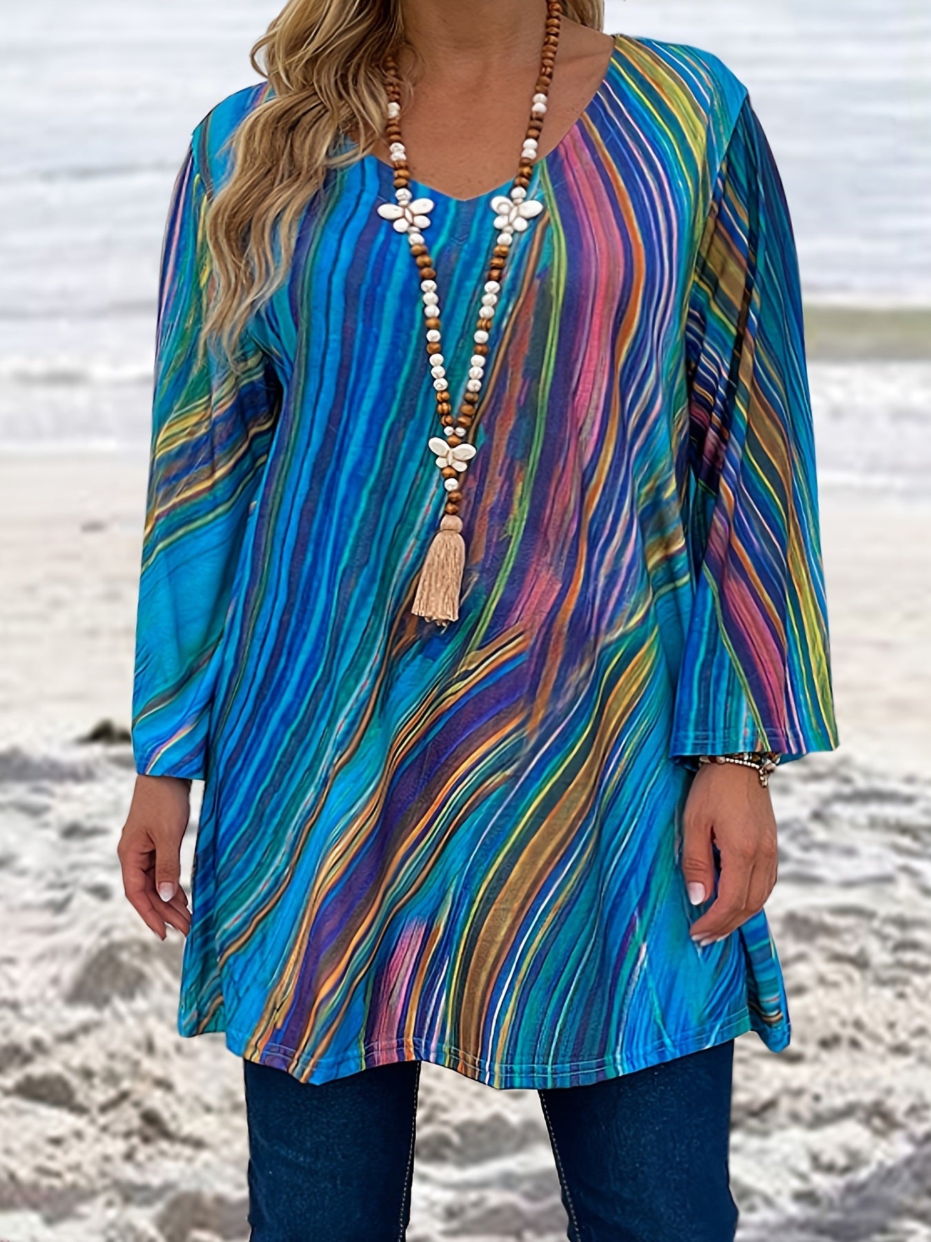 - Unique and Flowy: The fluid print design adds a touch of visual interest and movement. The flowy fabric complements the relaxed silhouette and drapes beautifully.