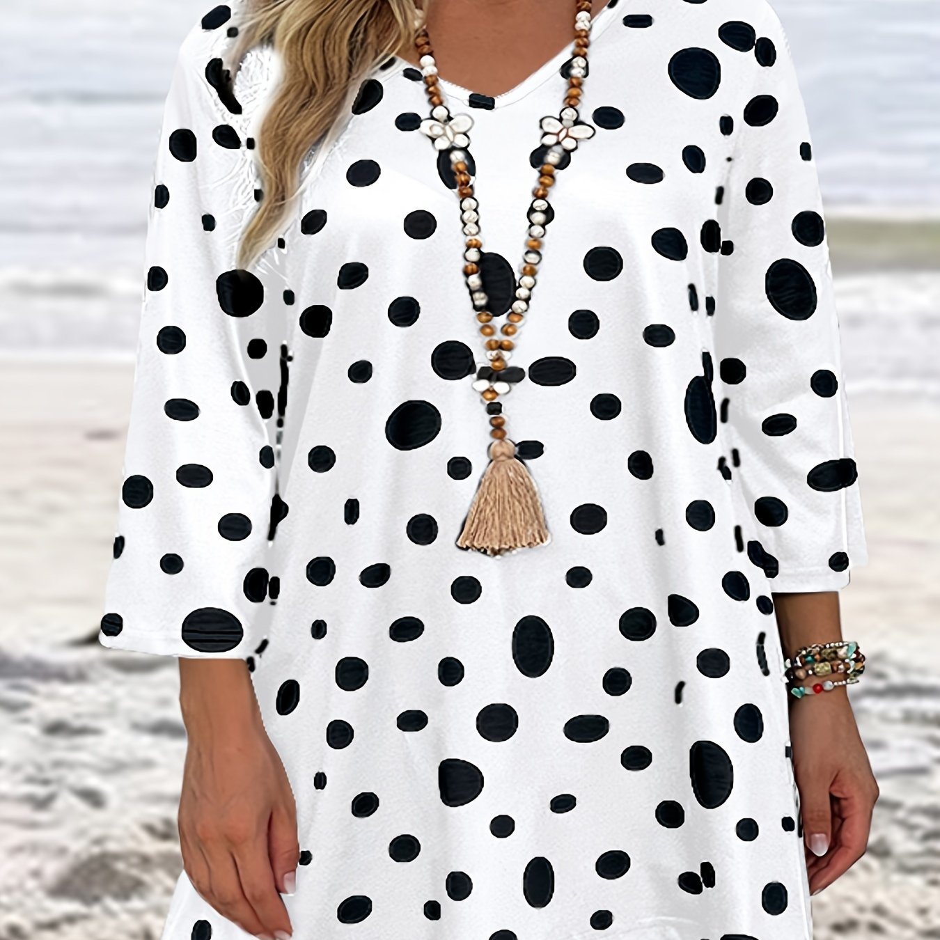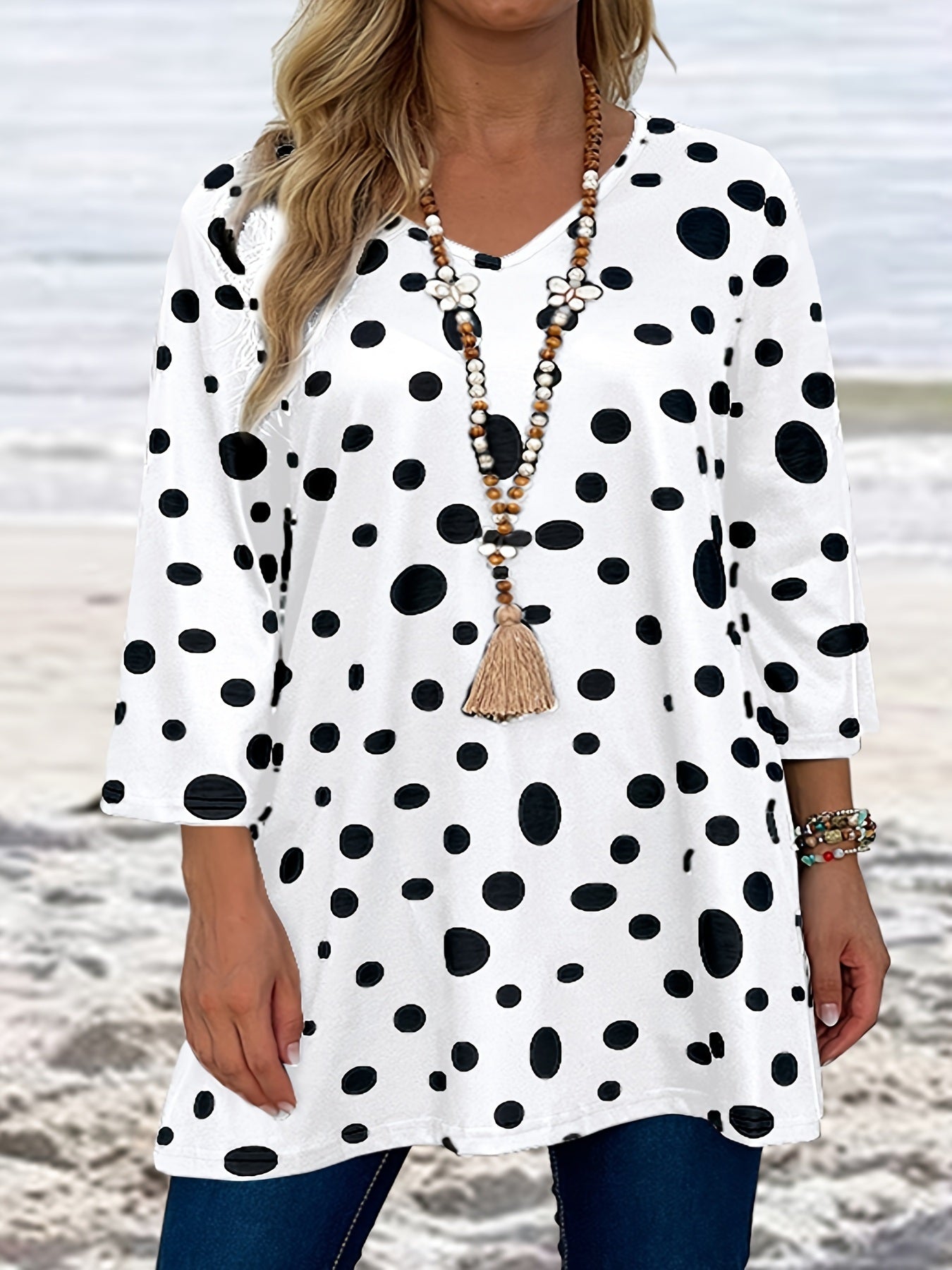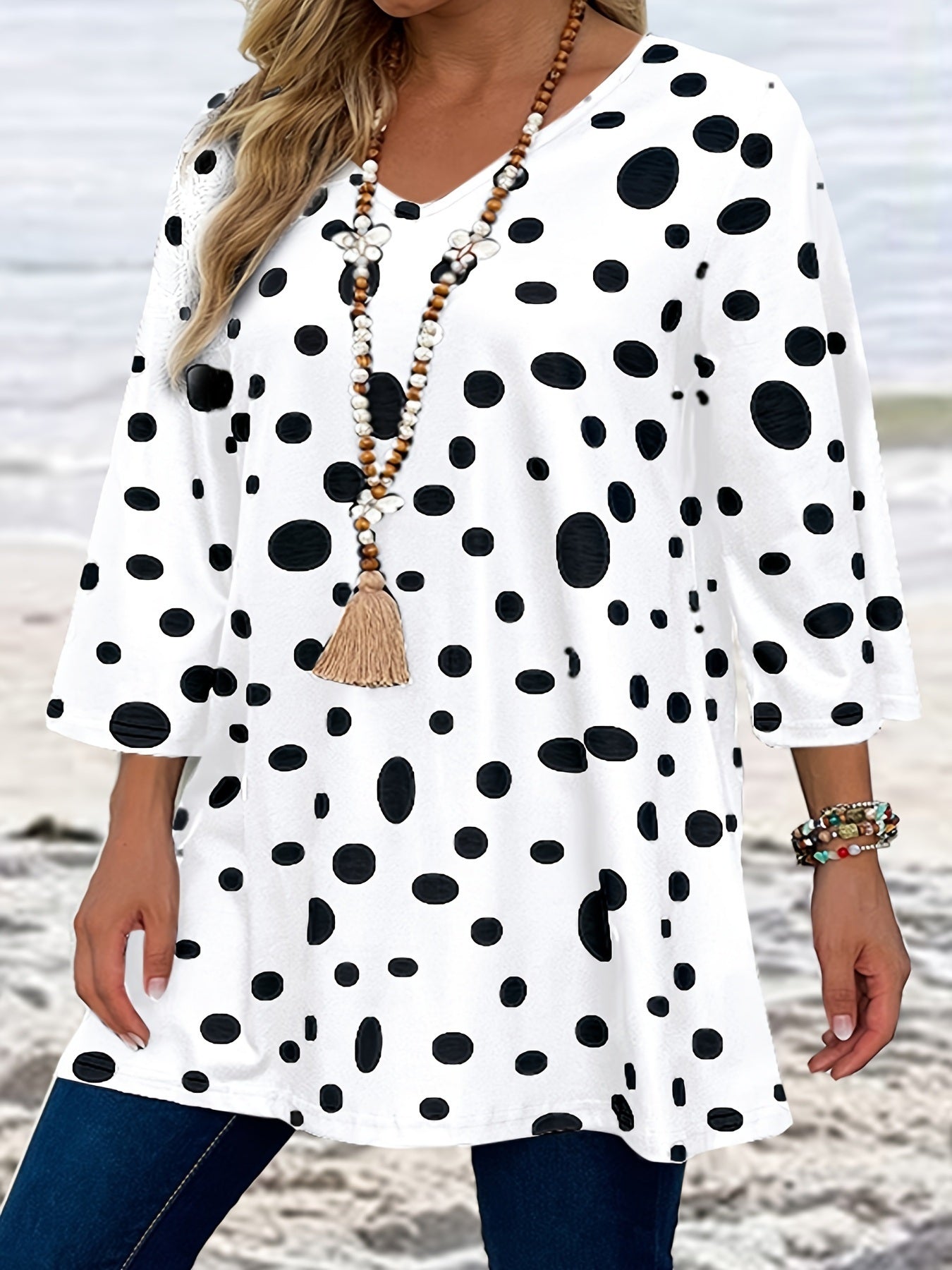 Women's Plus Polka Dot Print Half Sleeve V Neck Top