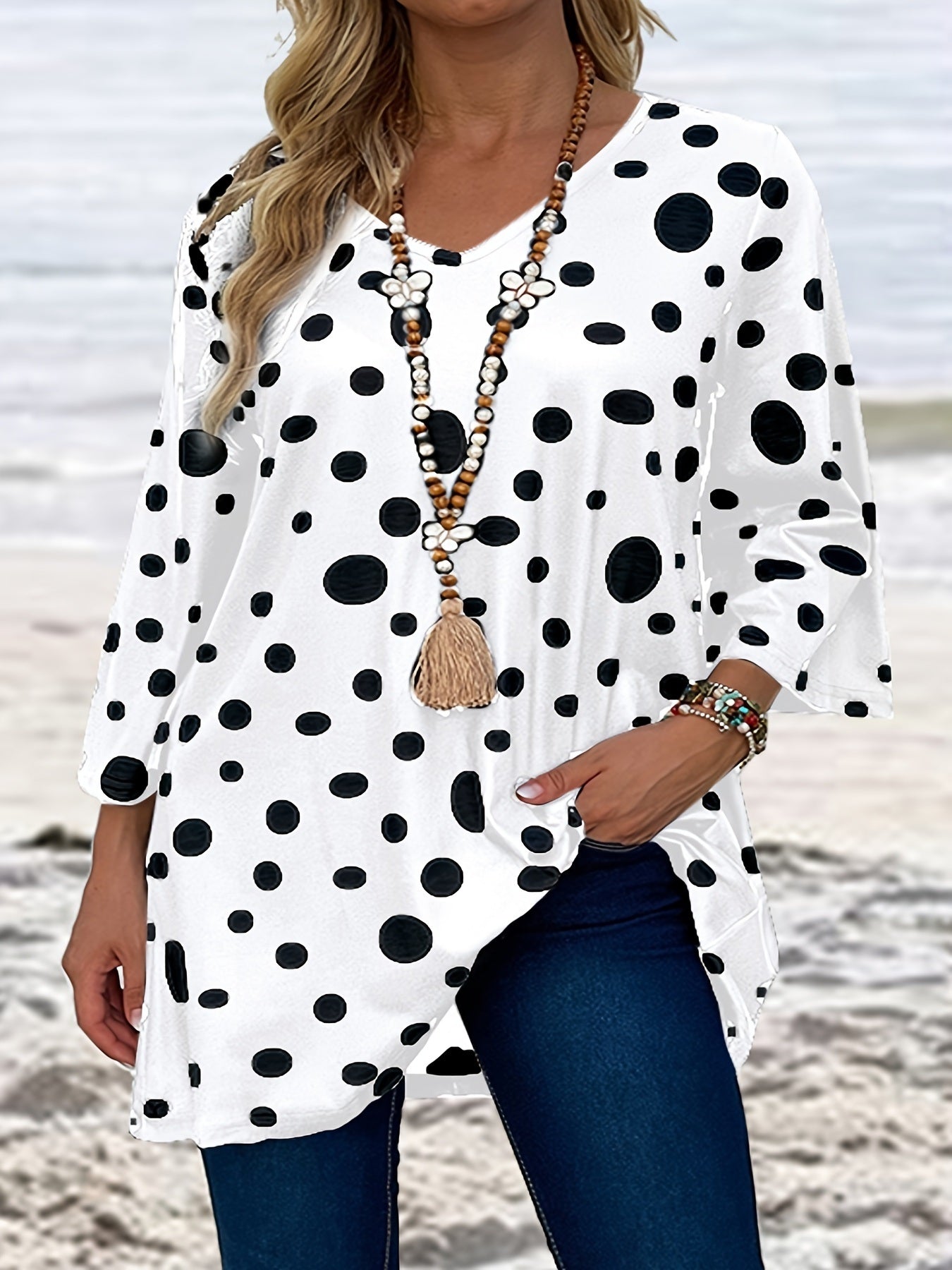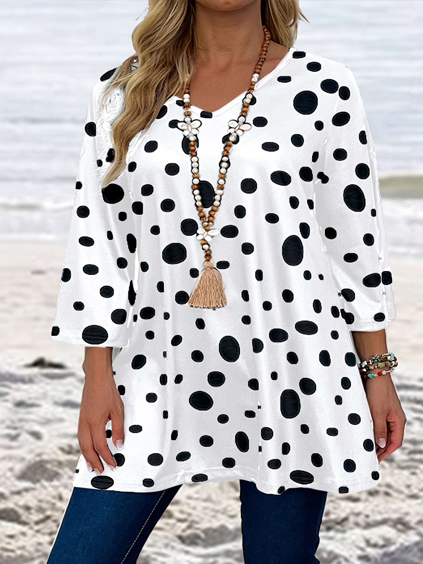 Add a touch of timeless charm to your wardrobe with our Women's Plus Size Polka Dot Tops. This playful and flattering top is perfect for any occasion, making it a versatile staple for your everyday style.